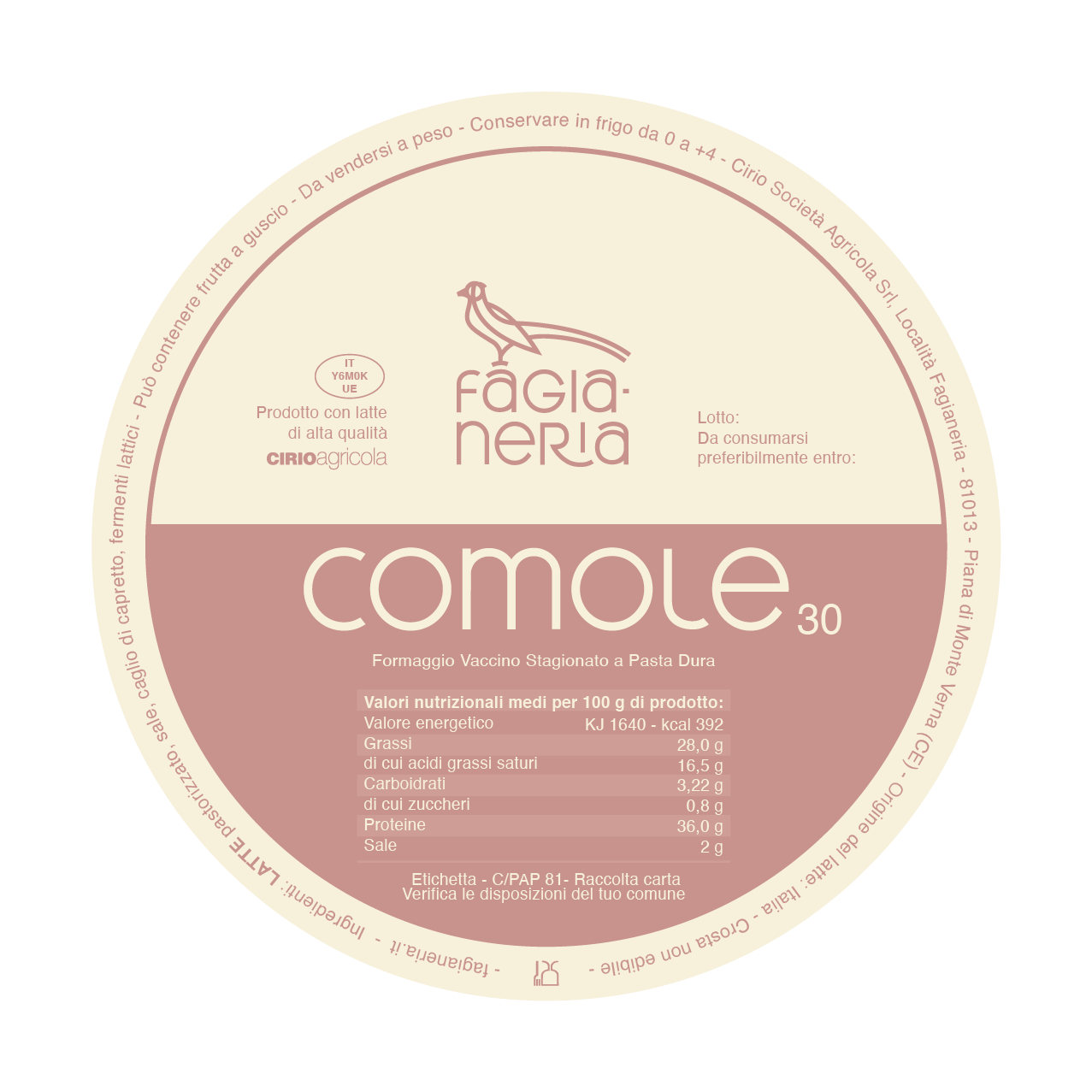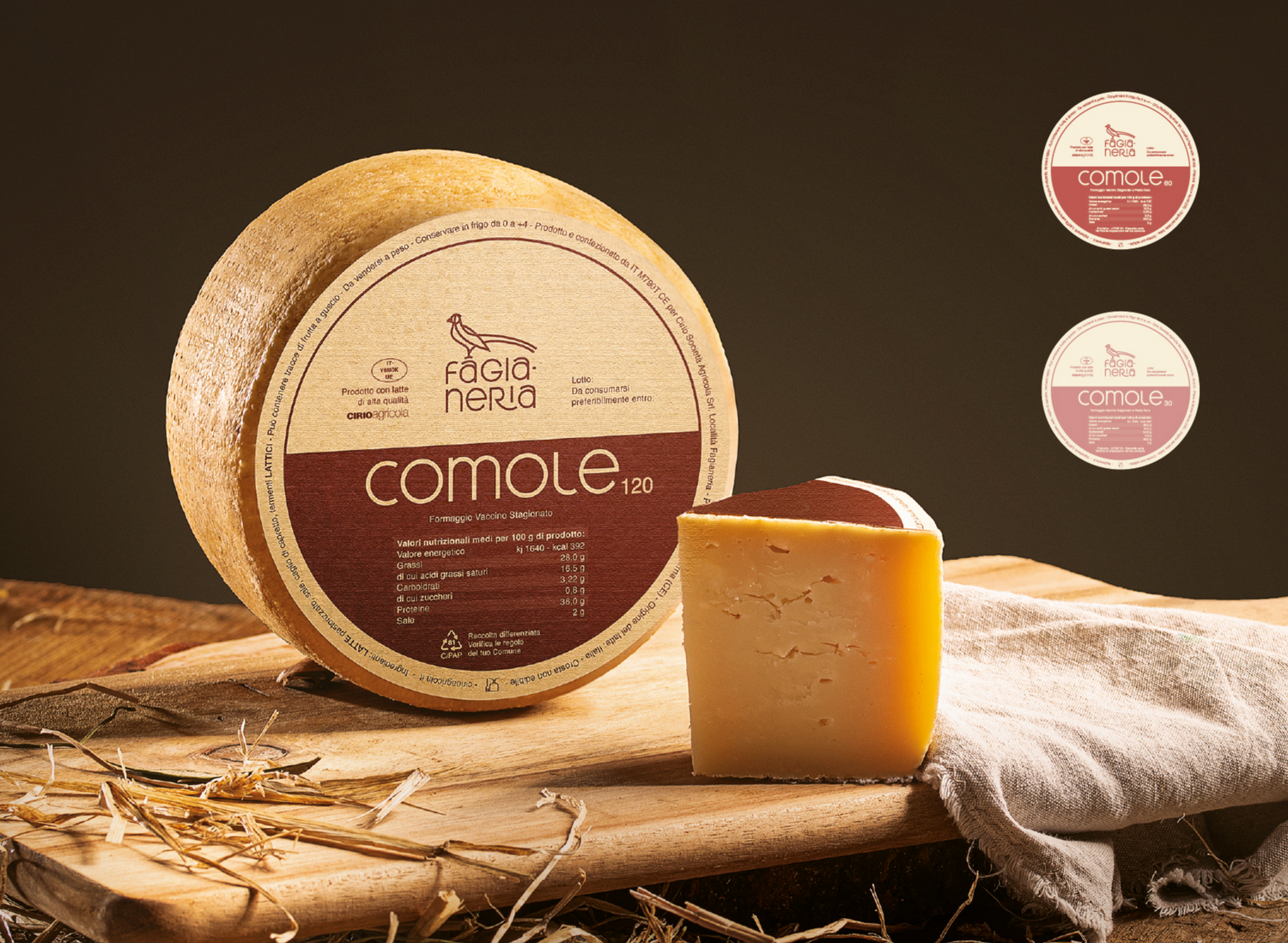 Il Comole 120 cagliato a temperatura di mungitura preserva la dolcezza naturale del latte fresco. La sua crosta, non edibile, è ricoperta da una leggera muffa bianca dovuta al Penicillium candidum, che contribuisce a sviluppare il suo caratteristico aroma intenso.