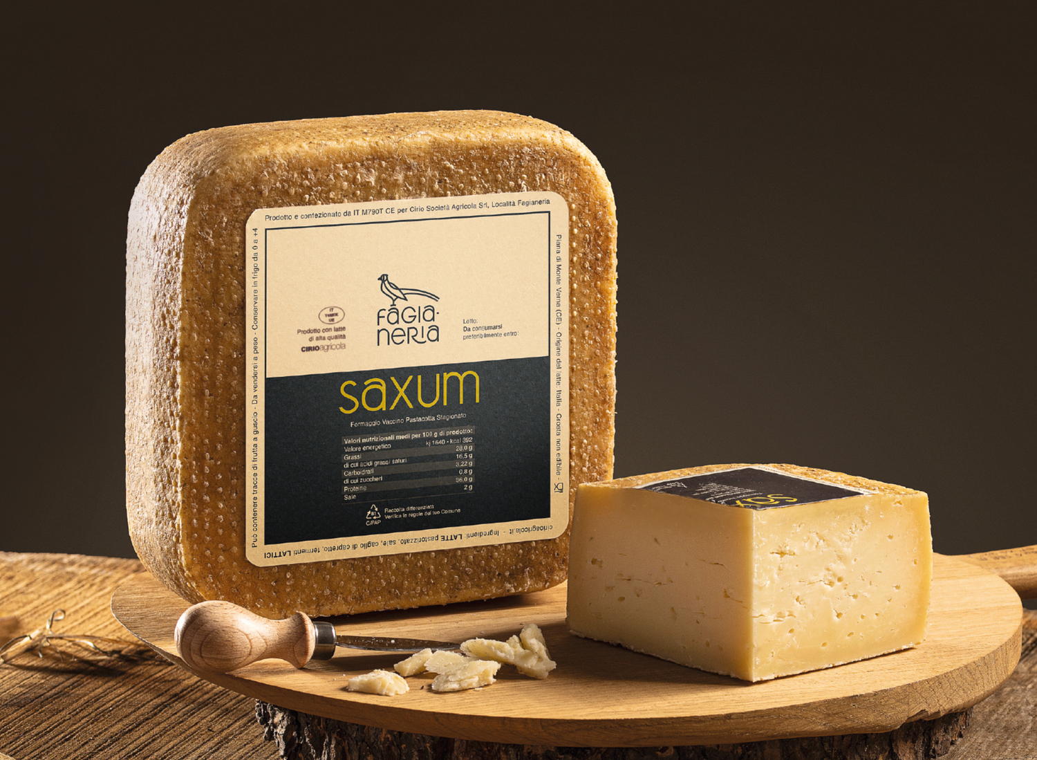 Il Saxum, a pasta semi-cotta, unisce tradizione e innovazione, arricchito dal Penicillium candidum e dal caglio di capretto in pasta. Inizialmente, la pasta giallo paglierino è compatta e morbida, con un sapore delicato. Con oltre 180 giorni di stagionatura, diventa più friabile, assume un colore giallognolo e sviluppa una nota piccante che ne arricchisce la complessità.